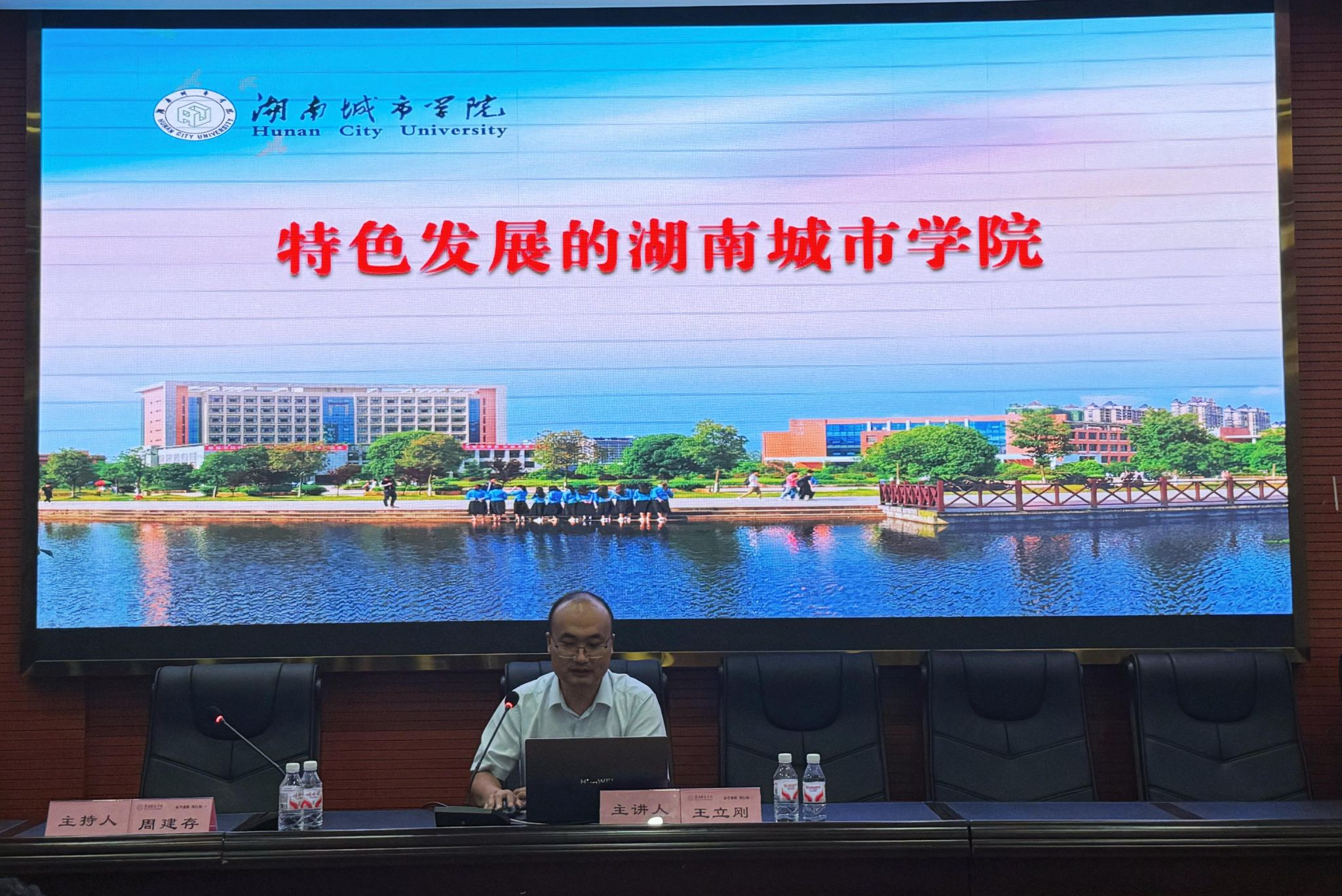 第二场由党政办副主任王立刚《特色发展的湖南城市学院》讲座。王主任学校章程、发展概况及特色优势。以时间为轴,阐述学校发展沿革、办学定位、主要成就、“十四五”战略及空间拓展蓝图。通过对特色优势的解读,增进了新生对校史校情的理解,强化了归属感和认同感。